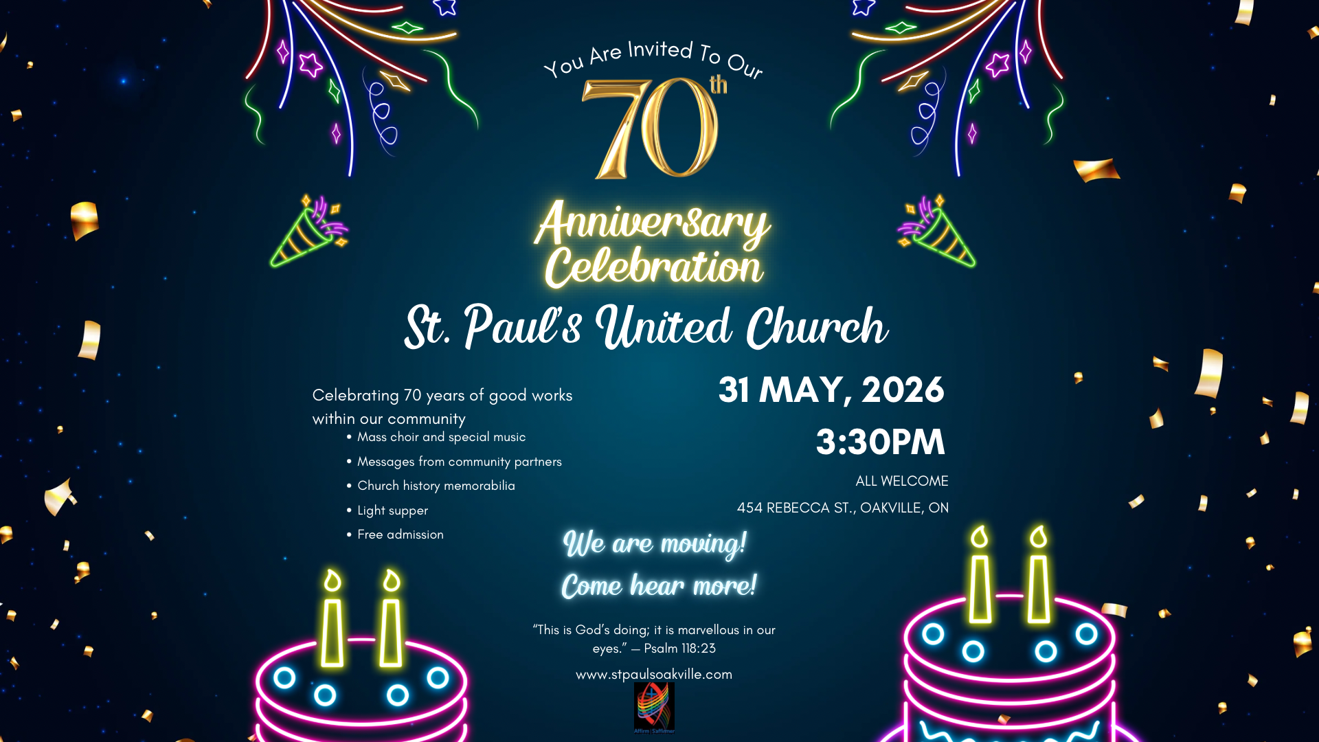 February 22 - St. Paul’s will be CLOSED. Worship will be at Trinity United Church, 1250 McCraney St. E., Oakville.
