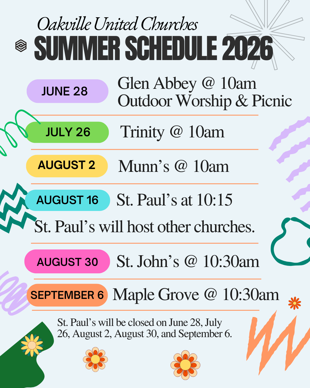 St. Paul's United Church is a diverse congregation striving to be an inviting, accepting and caring Christian community where all can belong. Our personal faith is founded in God as revealed through Jesus Christ and sustained through the Holy Spirit. It is nurtured through worship, music, study, discussion, activities and community. Enthusiasm for our faith encourages us to serve the community and the world.